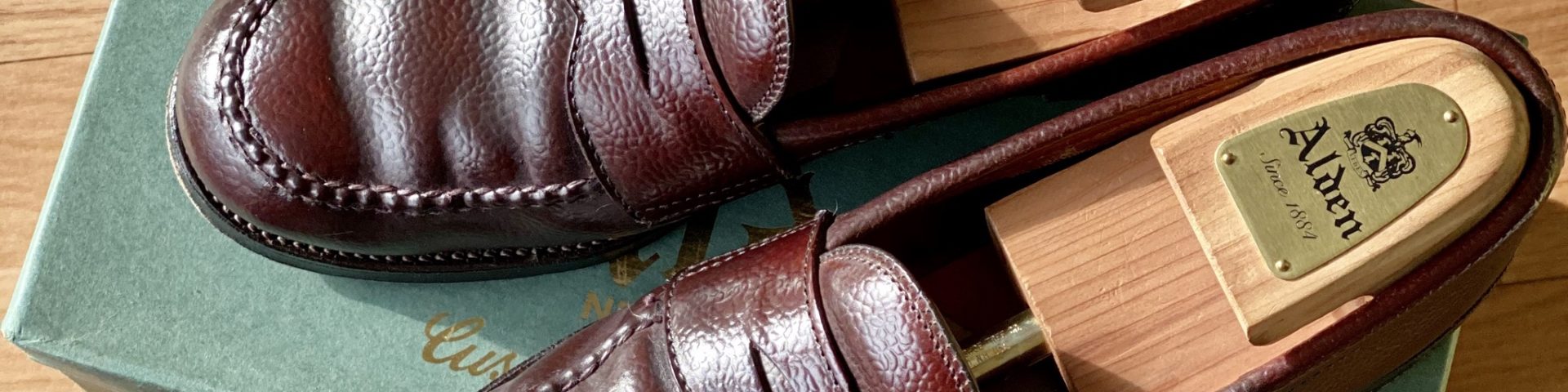 ホーウィン社では昔こそレギュラーとして型押しのコードバンが生産され、オールデンにもその革を使った靴がラインナップされていましたが、今ではもう生産されていません。