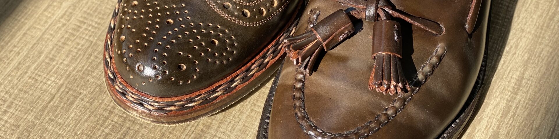 どっちも色味としてはダークブラウン、濃茶、そしてホーウィン社のシェルコードバンです。