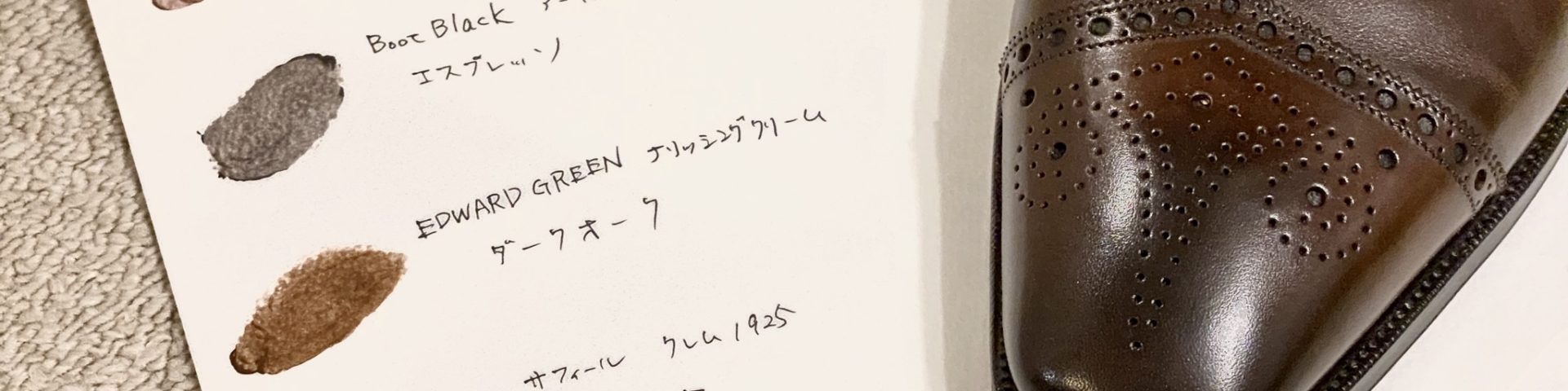あと一歩ビビッとくるものがありませんが、今回はとりあえずの精神で。エドワードグリーンのダークオークでいきます。