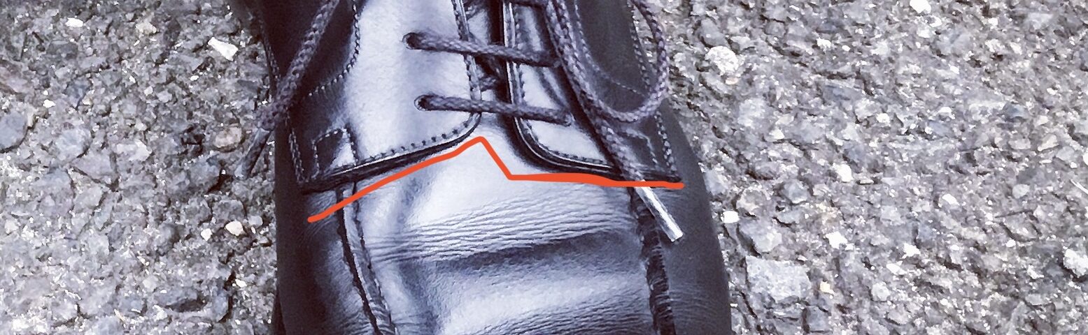 もでぃふぁいど はちょくちょく気になってたいたのですが、外羽根の靴を履き、自分の靴を上から見たとき羽根の位置がズレるんですね。