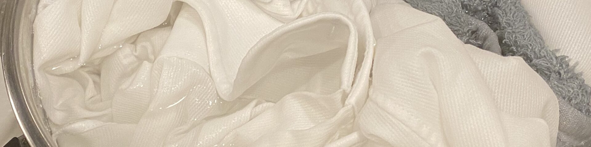 煮沸並みの殺菌力……!!と謳う洗剤もありますが、「じゃあ煮たらええやん」ということで鍋でしばらくグツグツやり、ワイドハイターと粉洗剤で洗濯機へGoです。