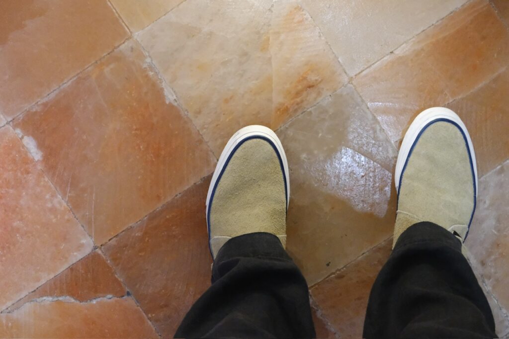 それを踏まえて今回選んだのは、ワクワでした。ラバーソールなのでパキスタンブースの岩塩の床も安心。ここ、ぜんぶ床が岩塩なんですよ。しかも日本の湿度で溶け始めているという。笑