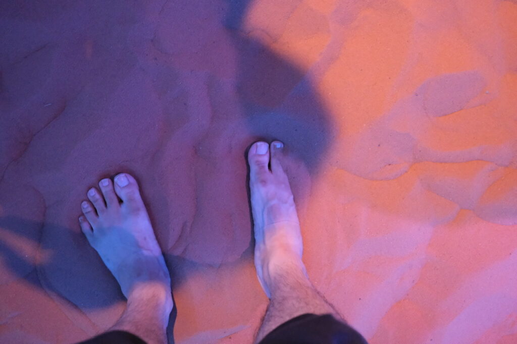 ここはヨルダンの砂を裸足で体験するパビリオンで、脱ぎ履きがマストです。でもこの体験、素晴らしいので行くかたはぜひ予約抽選の申し込みをオススメしたいです!!もでぃふぁいど がオススメするまでもなく大人気パビリオンですけどね!!