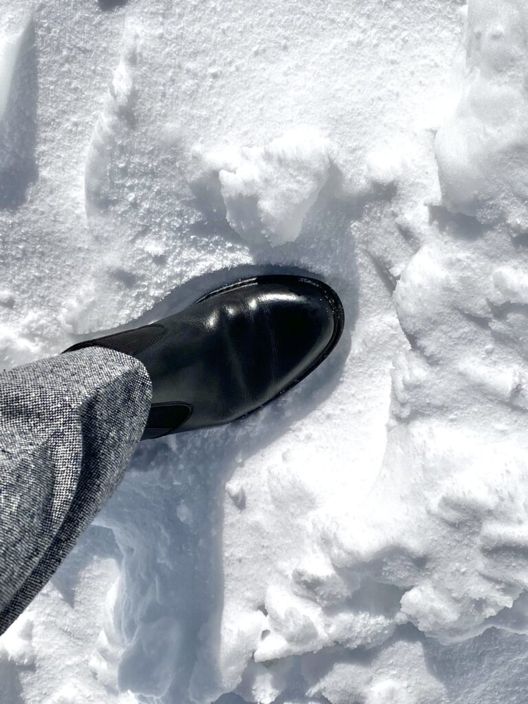 まぁでも磨いていったのでなんかいい感じのツヤです。滑らないように足元を注視していると見せかけて、靴ばかり眺めていたのでした。