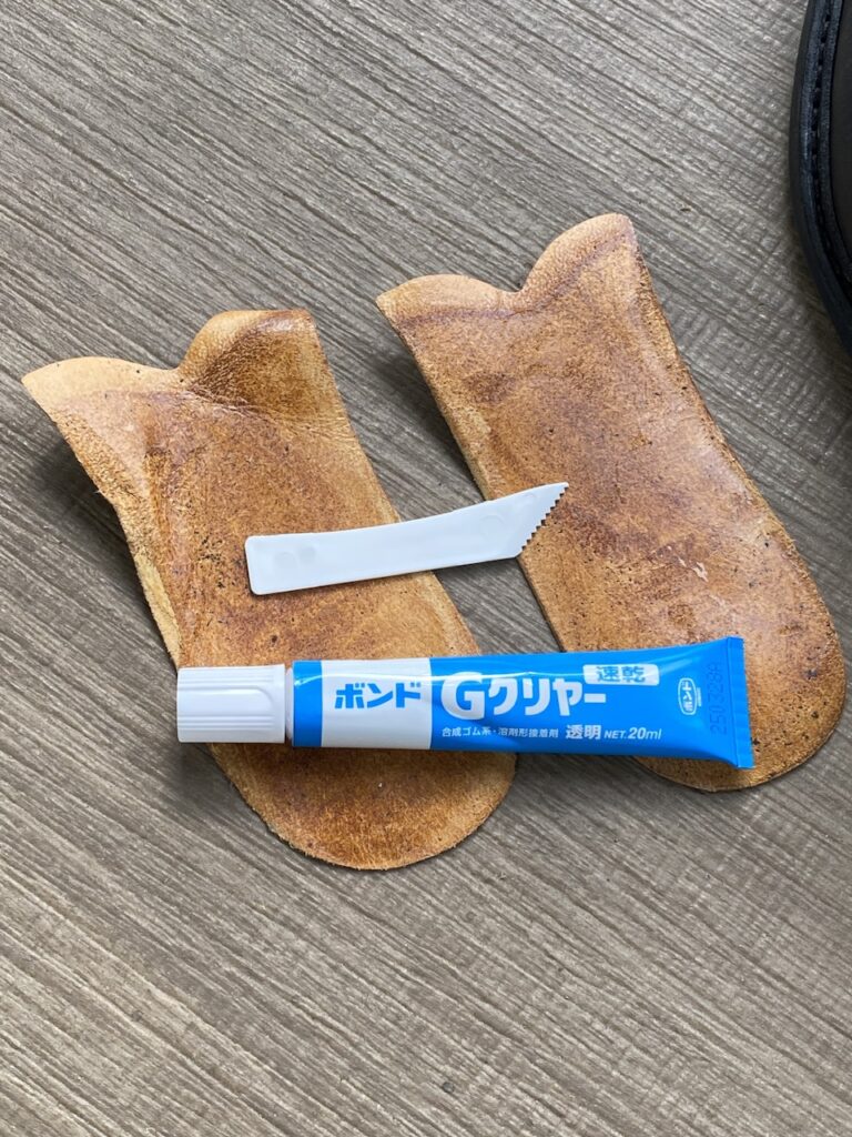 あんまり気になるようなら追いクリヤーGしますかね。とりあえず、ふだんどおりつっかけるように履いてもインソールがズレないくらいにはくっついたので、目的は達成しました。
