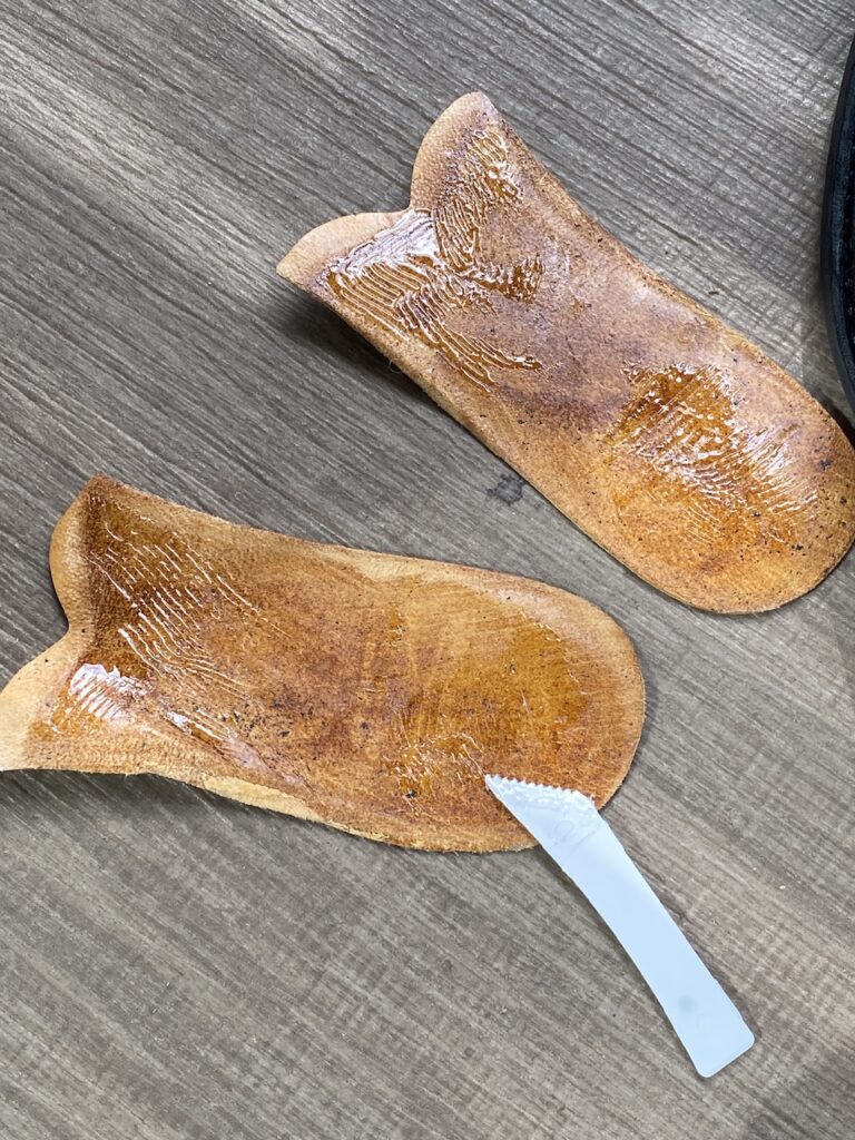 そして乾燥。5-15分ほど乾燥させてから接着します。有機溶剤のニオイがぷんぷんするぜ!!