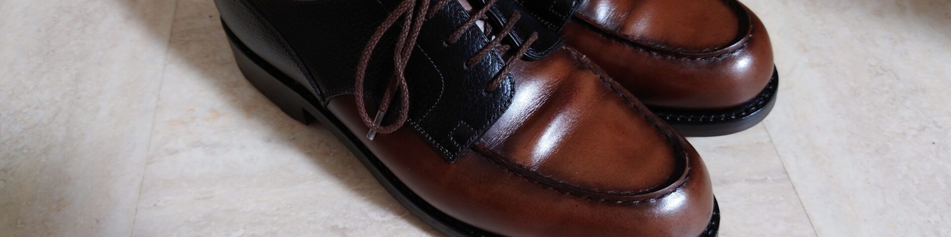 往年のジョンロブのコンビバロスを彷彿とさせますが、茶系でまとめたあちらに対し、こちらは黒と茶、コンビ感が際立ちます。