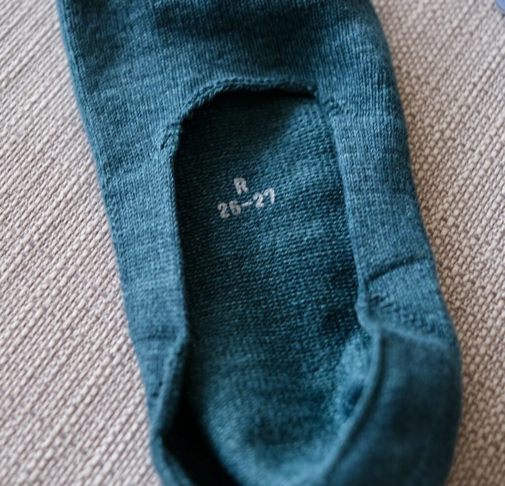 激薄のフットカバーも多いので、それと比べるといくぶんタイトになる傾向にありますが、ちと緩いか?くらいのリラックスフィットのローファーにはピッタリ。