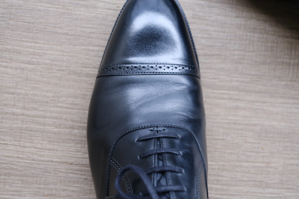 よって、この靴を履き下ろすときには決めていた。シワ入れを行なって、理想のシワにするのだと。2本、並行に近い形で入ってくれれば嬉しい。