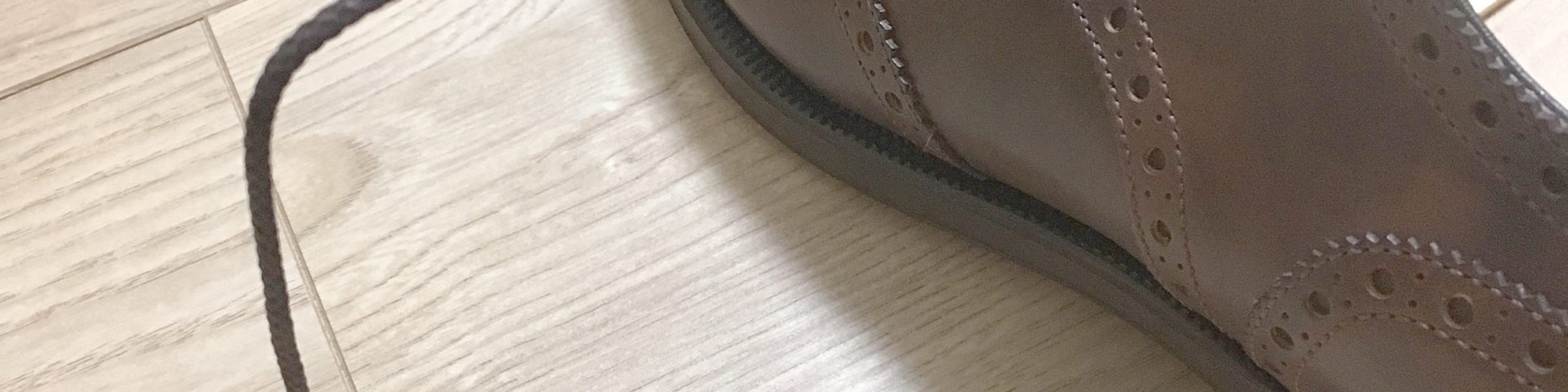 ちなみに、リーガルトーキョーでオーダーした9分仕立てには最初から編みひもタイプのものがついていました。外羽根フルブローグということで、この紐をチョイスしていただいたのだと思います。