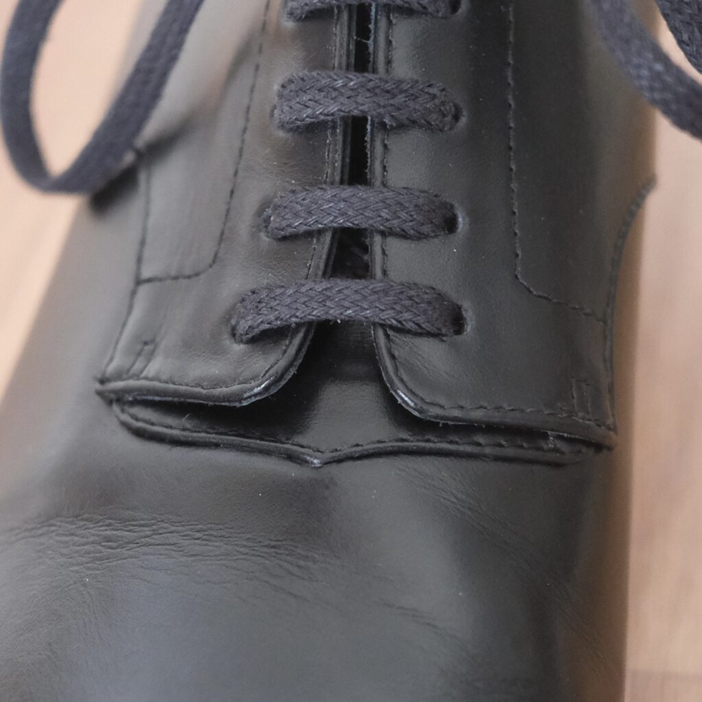 しかし、普通の外羽根プレーントゥかというとちょっと違って、羽根の下にちょっとしたデザインが。全体的にコロンとしたフォルムの中にあって、少しだけシャープさが光るディテールです。隠しスパイスのように効いています。