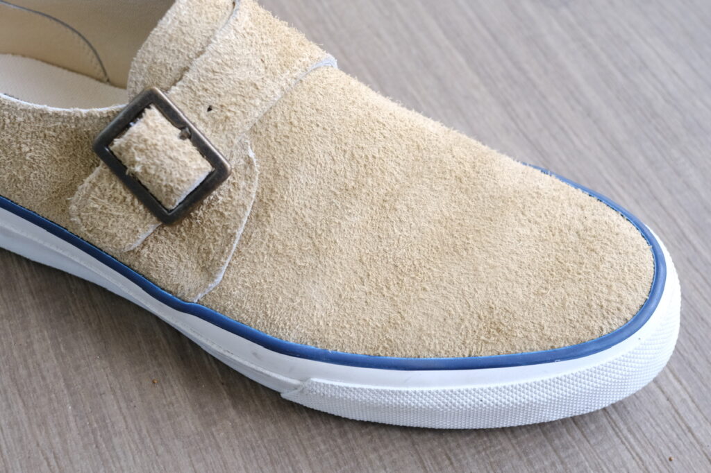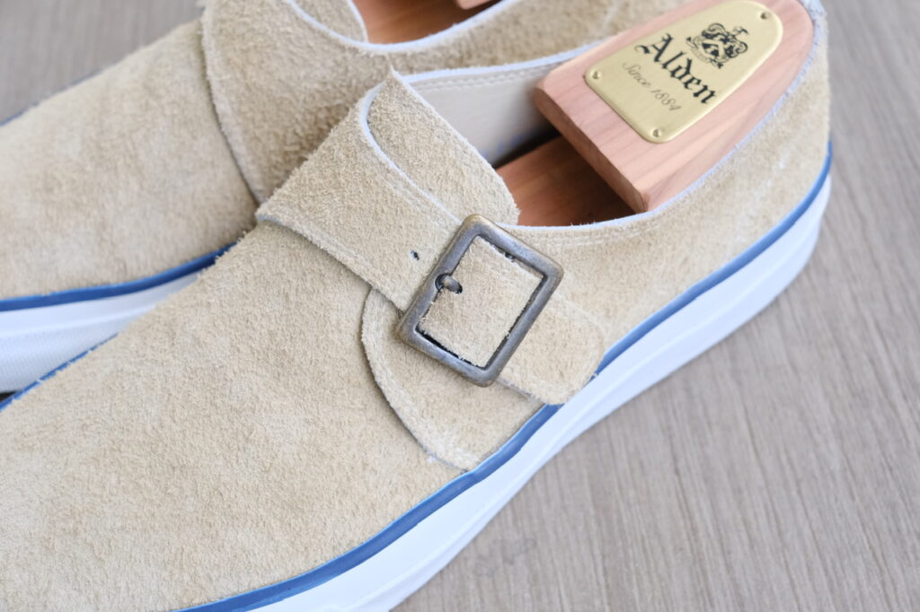 このモンクストラップはバックル側がエラスティック仕様なので、いちいち外さなくても脱ぎ履き可能です。