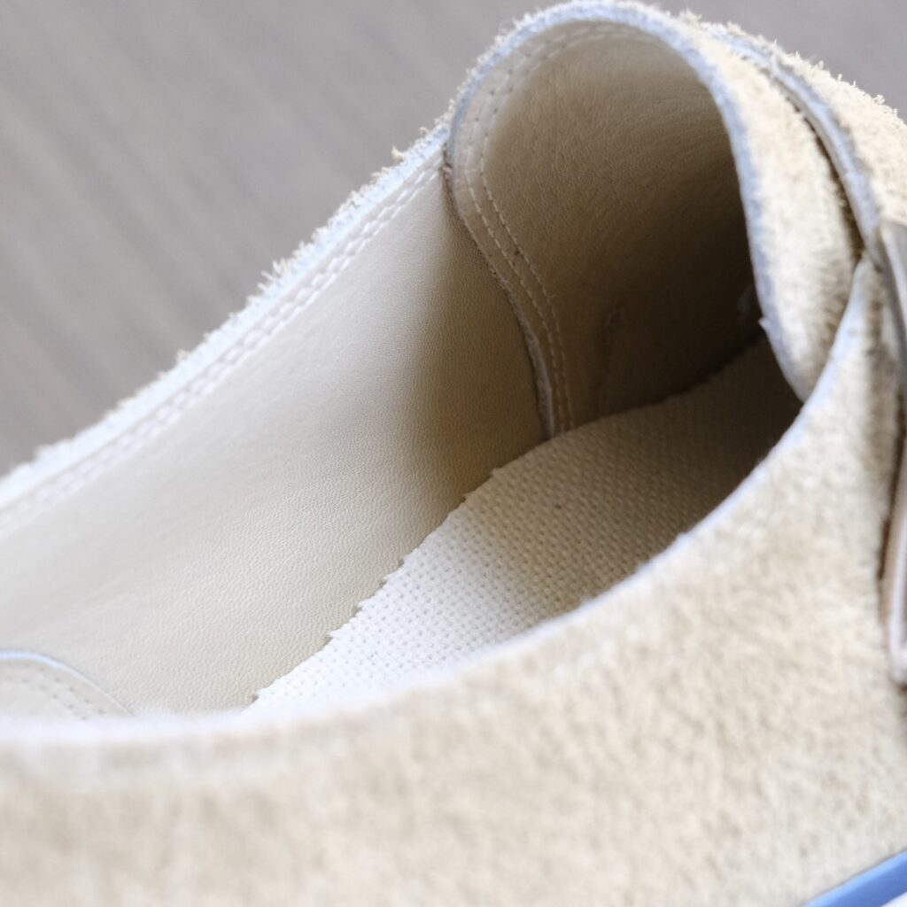 ただ、内側を見ると表革のように見えるので、スプリットレザーではなく銀付きスエードということで良いのでしょう。このあたりは手抜きなし、さすがです。