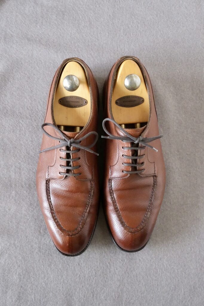 一方、エドワードグリーンはこの形をそのまま踏襲するのではなく、カントリーシューズとしての実用性を残しつつ、ドレス靴の木型に落とし込む方向で洗練させていきます。