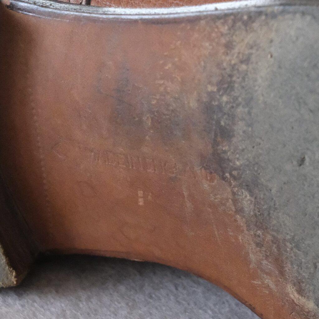 現在ではドレスシューズの印象が強いブランドですが、創業当初はブーツメーカーとしてスタートしています。なのでしばらくはブランド名のところにBOOT MAKERと入っていました。この時代のロゴもいいですよね。