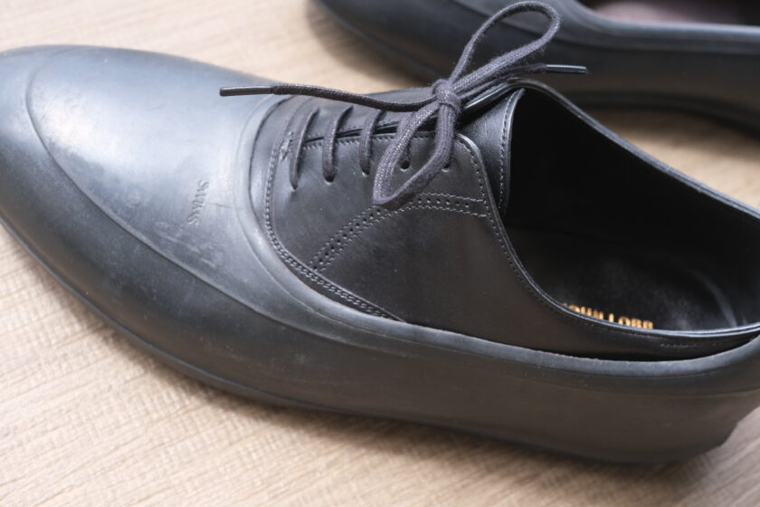 それにアッパーだってケアすれば良いとはいえ、雨の日に履けば1発でケアが必要になります。ハレの日に向けて磨いたばかりの靴をもう1度磨かなきゃならないのは、まぁ言っちまえば面倒です。