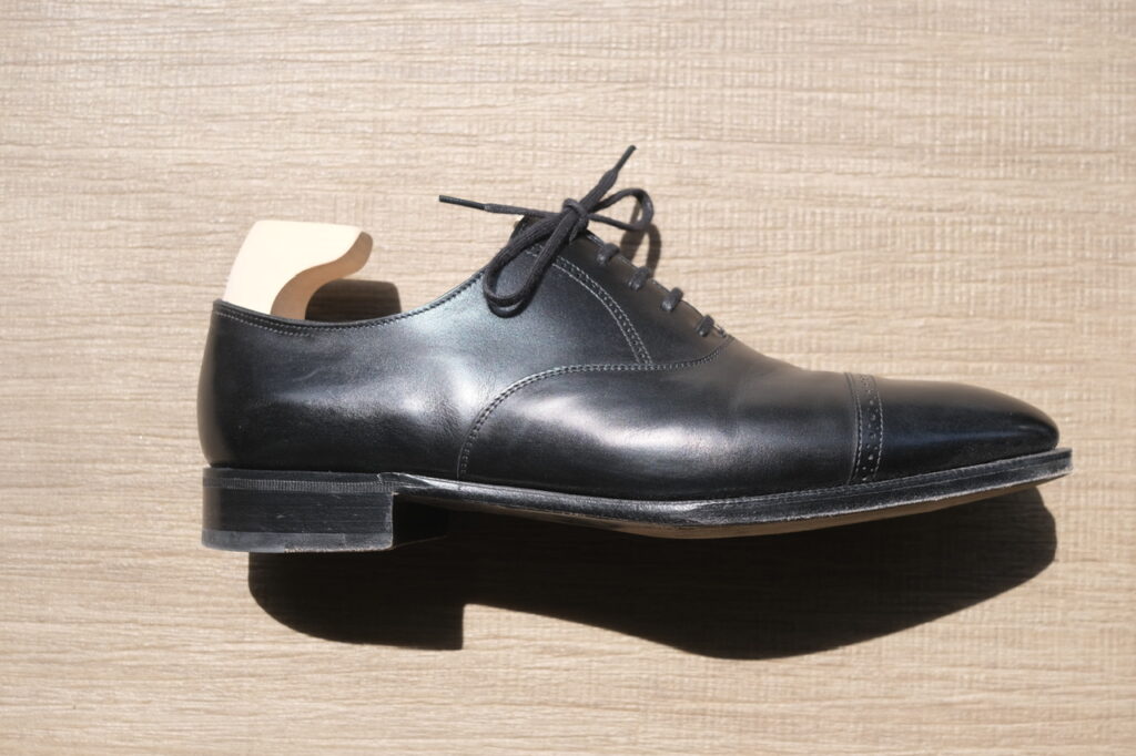 鏡面なしのナチュラルな素材感、今まで磨いてきた蓄積で勝負するか、雨の日にも、バッチリ晴れ(ハレ)の日用のドレスシューズを履いてきたという心意気を買っていただくしか……!!
