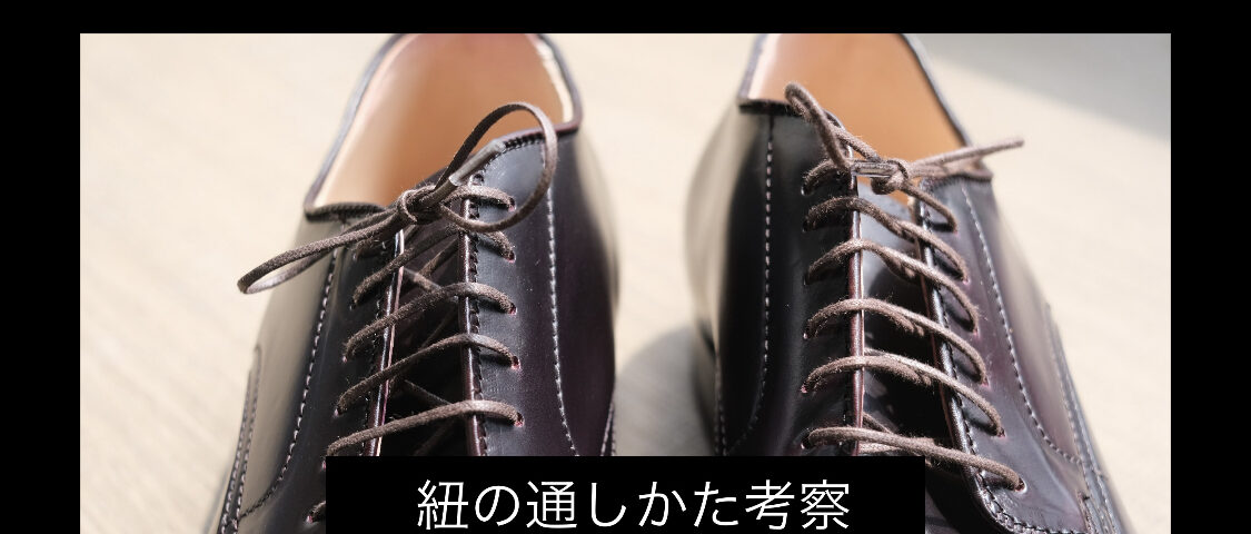 革靴の紐の通しかたっていくつもあります。遊び的な通しかたを除いてスタンダードなもので言えば、