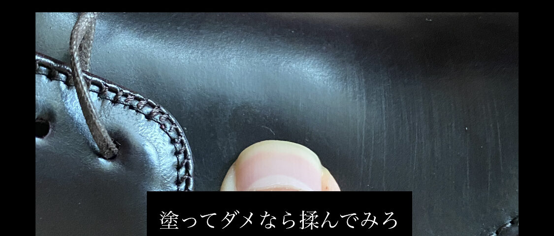 そもそも、靴を揉んでそれでシワが入ってしまったら元も子もないので、指先でピンポイントに押すようなことは避け、掌でほぐしていくようなイメージで揉むとシワも入らなそう……というのが上の写真です。